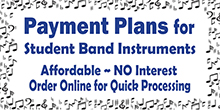 We offer a full line of percussion, strings, brass and windwood instruments and accessories for all of your school band program needs. Trumpets, trombones, French horns, baritones/euphoniums, tubas, bassoons, clarinets, flutes, oboes, piccolos, saxophones, concert percussion and marching percussion. Can't find what you are looking for? Give us a call 1-800-872-2263.