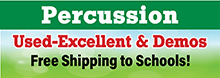 We offer a full line of percussion, strings, brass and windwood instruments and accessories for all of your school band program needs. Trumpets, trombones, French horns, baritones/euphoniums, tubas, bassoons, clarinets, flutes, oboes, piccolos, saxophones, concert percussion and marching percussion. Can't find what you are looking for? Give us a call 1-800-872-2263.