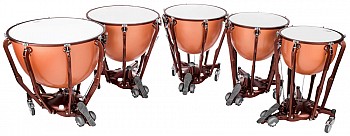 Fiberglass Bowls are mounted directly to the struts of the drum. Patented Balanced Action Pedal allows for the tuning of a major sixth per each drum. Built with interior tuning mechanics. Fully adjustable pedal activated tuning gauge is standard with all Ludwig timpani.