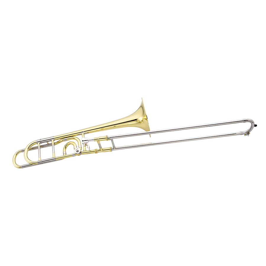 Jupiter Performance F-Attachment TrombonesMechanical link tapered rotary valveOpen wrap tubingLacquered brass body.547" large bore8.5" bellNickel silver outer slideChromed inner slidesIncludes mouthpiece Includes Session Series zippered case